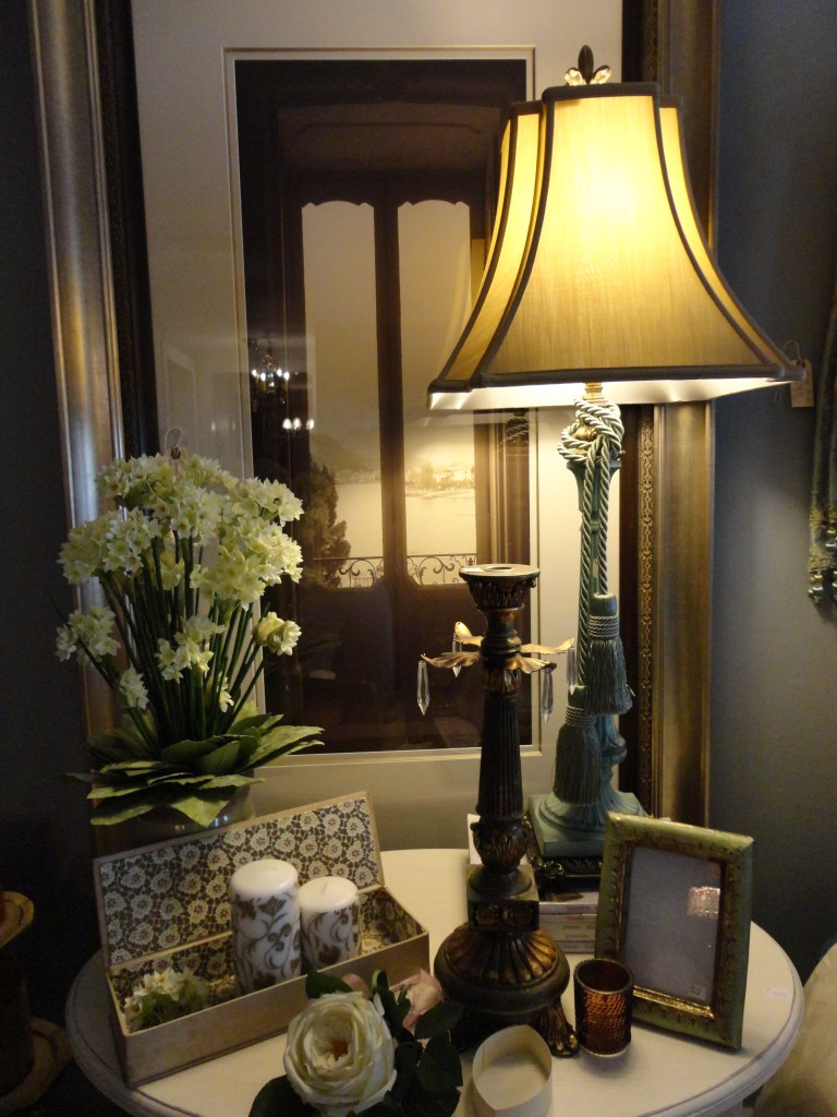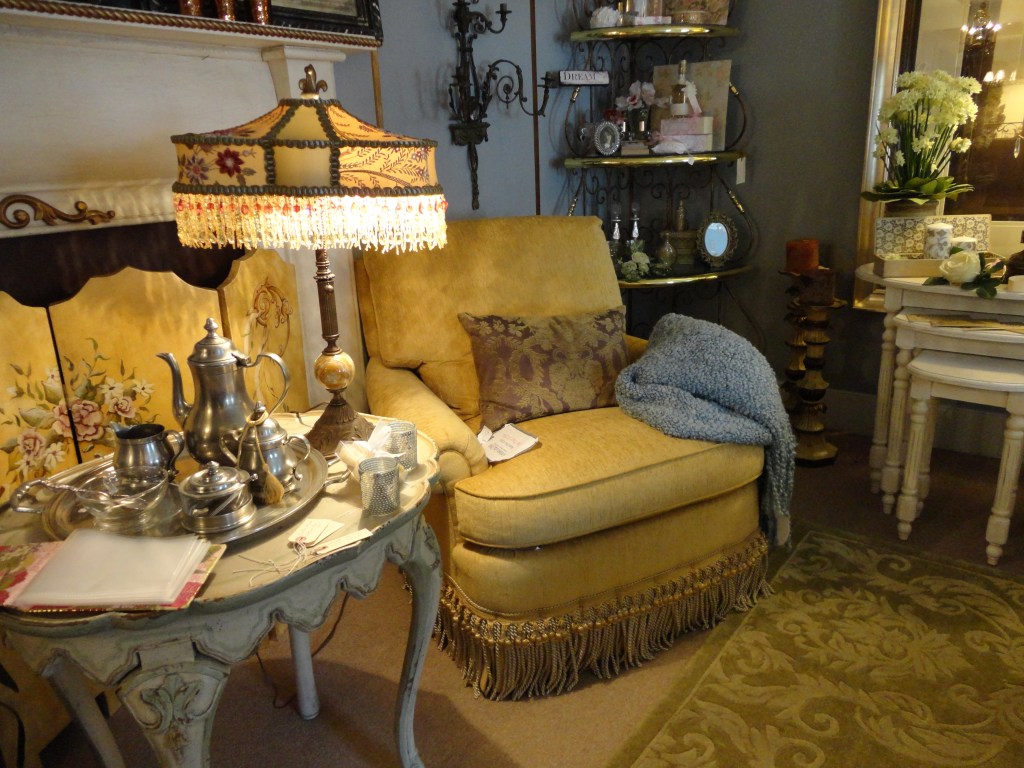 As you enter our new shop you are greeted with an elegant design vignette that showcases our sofas, art, lamps draperies and carpets…
