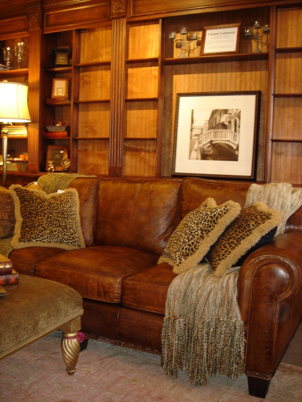 We had a lot of room at the 44 Main Street location so we had up to 9 sofas on the shop floor all the time…this is a beautiful Hancock and Moore sofa…and it looks beautiful in front the model of our custom cabinetry. We still carry Hancock and Moore and Caracole sofas today although it is definitely harder to display them! We are still creating beautiful custom bookcases and furniture for our customers today also.