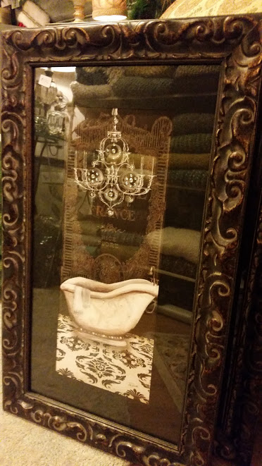 Of course we have more new artwork. This pretty piece has a mate…hidden behind it! You will have to come in to see how beautiful they are. The frame is exquisite!