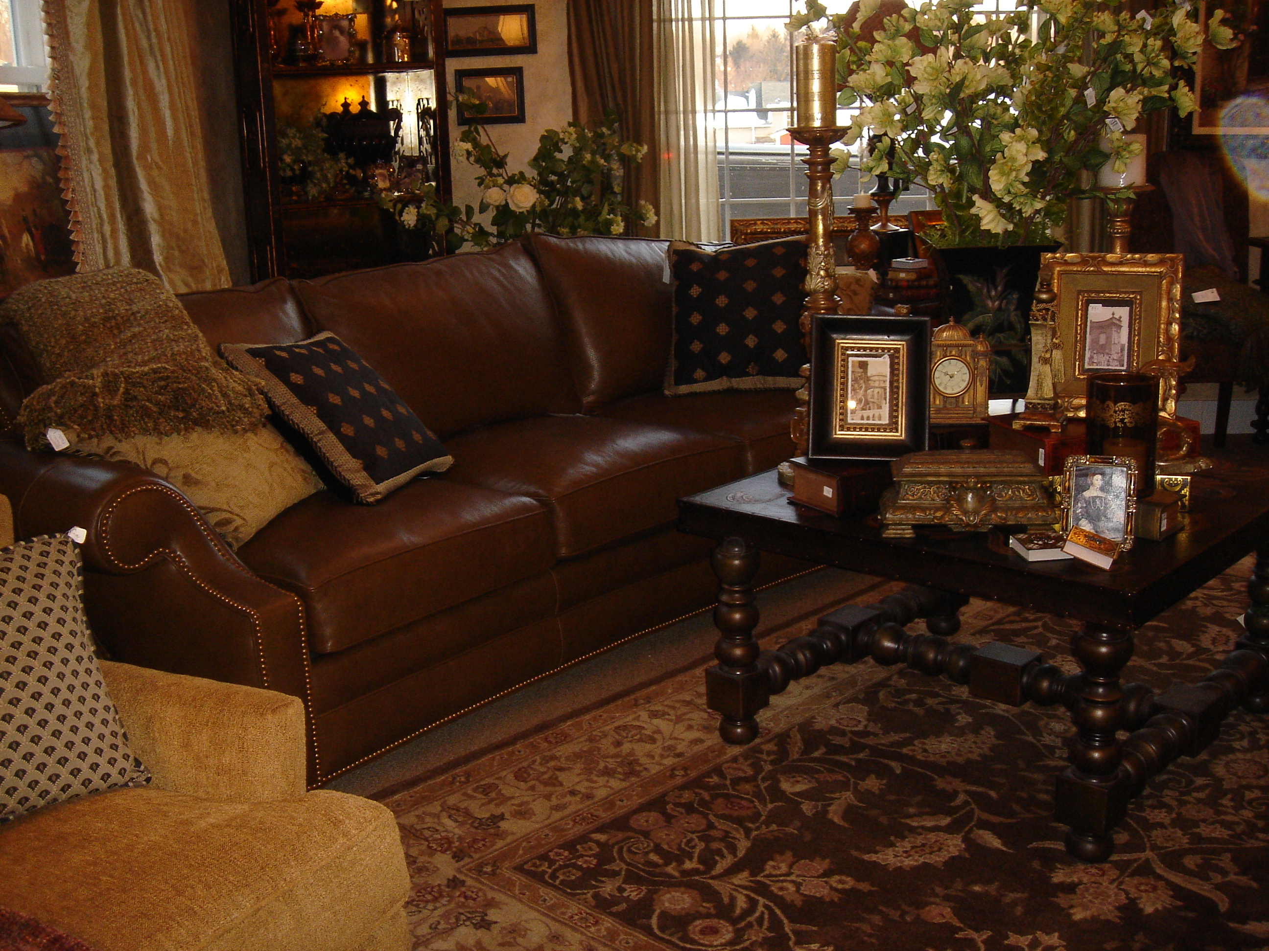 We had a lot of room at the 44 Main Street location so we had up to 9 sofas on the shop floor all the time…this is a beautiful Hancock and Moore sofa…and it looks beautiful in front the model of our custom cabinetry. We still carry Hancock and Moore and Caracole sofas today although it is definitely harder to display them! We are still creating beautiful custom bookcases and furniture for our customers today also.