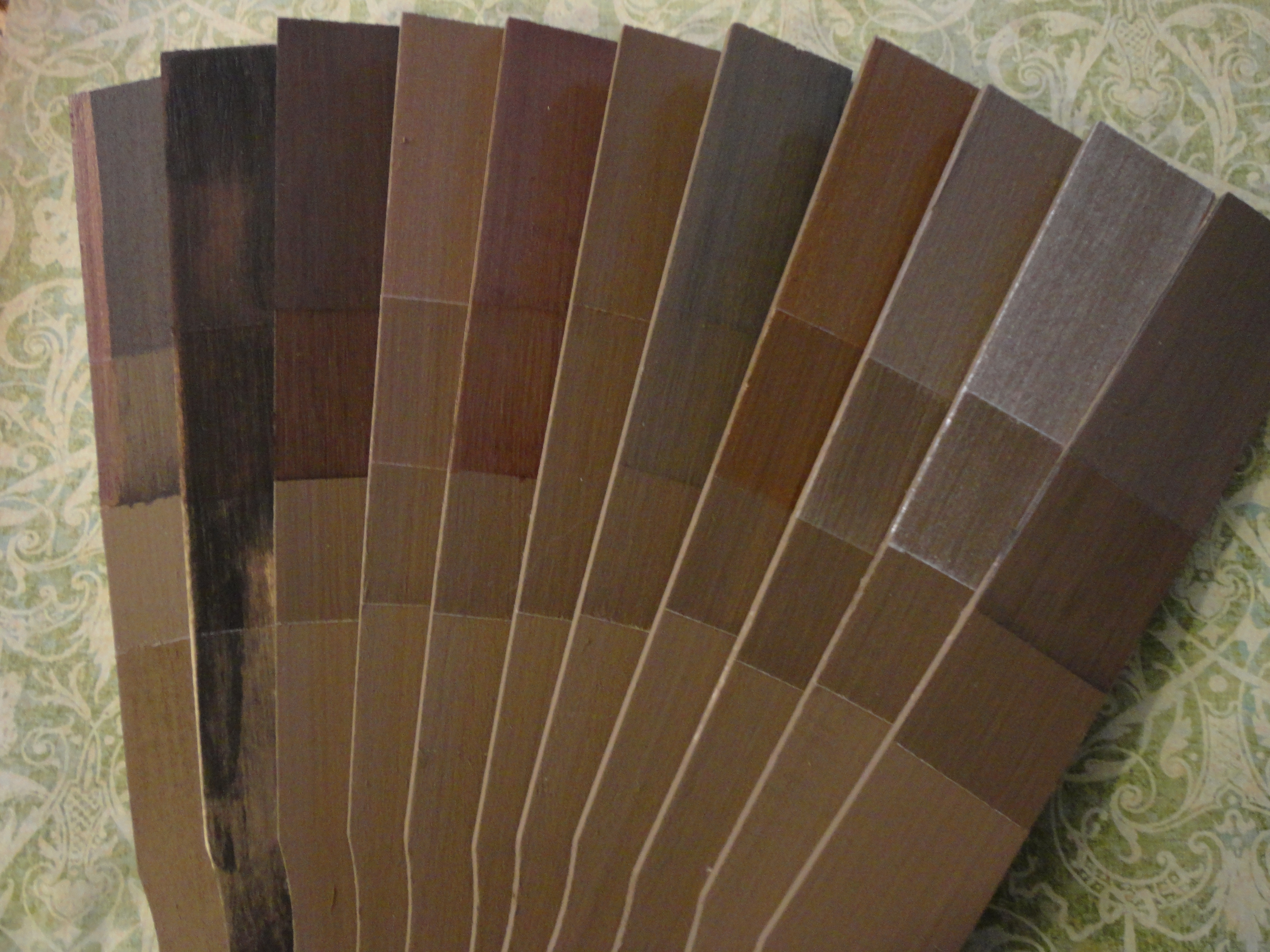 Below is shown a grouping I am calling my “red/brown tone” collection of glazes over Madagascar Mocha….left to right Micki’s Magic – Red Mahogany – Lite Brown Sugar – Copperhead. They almost give the appearance of wood stains.